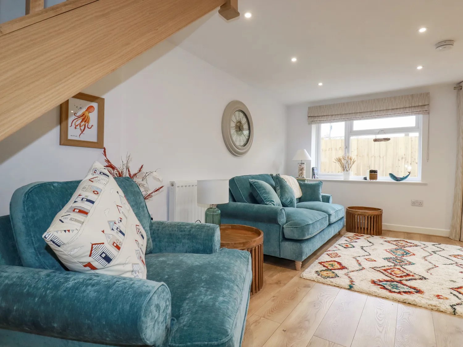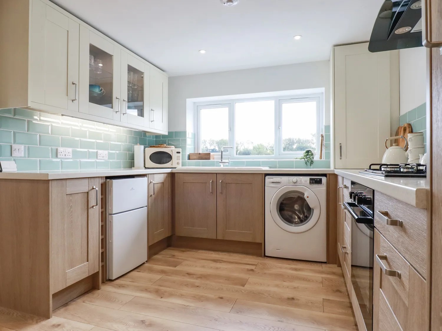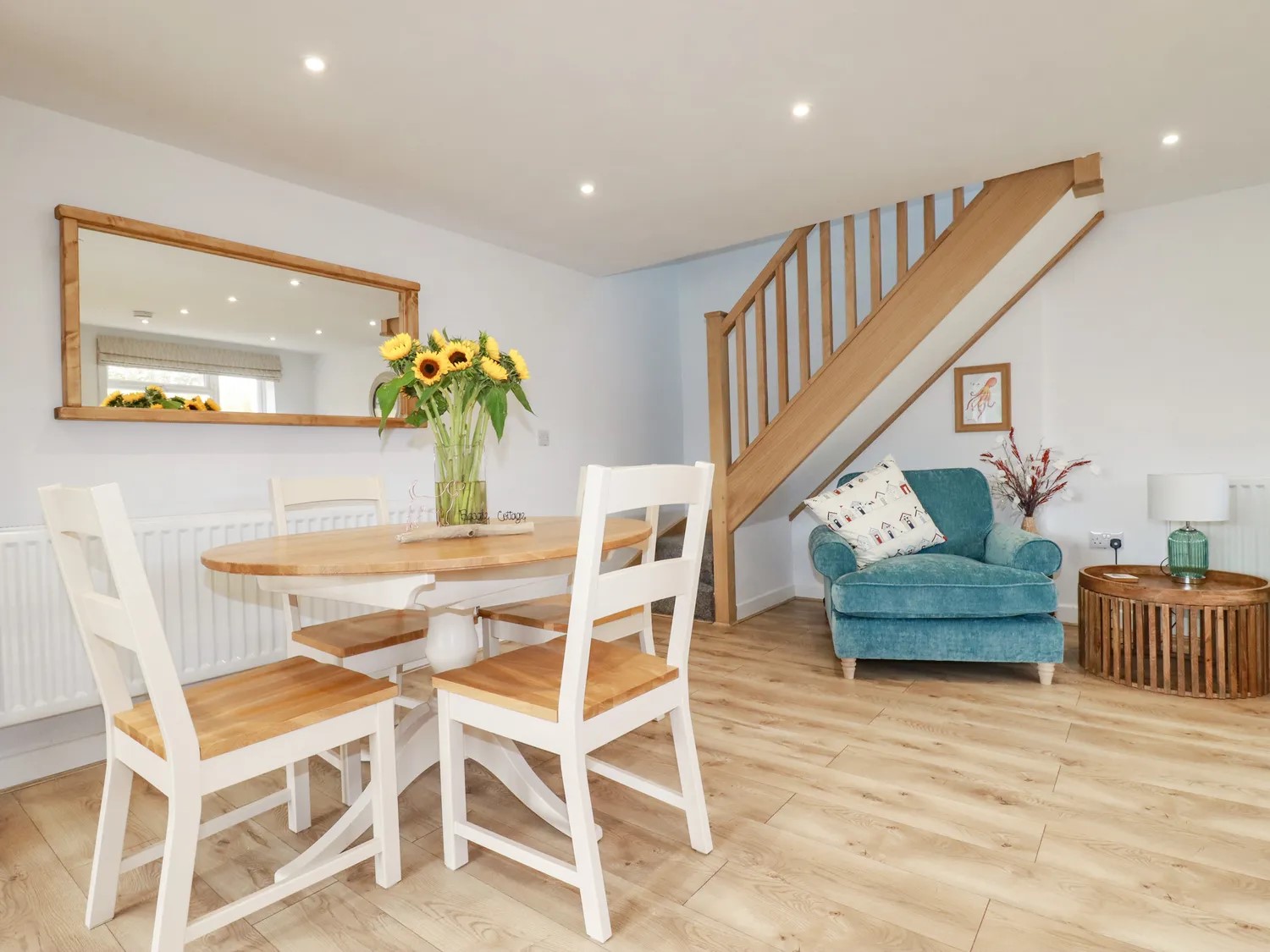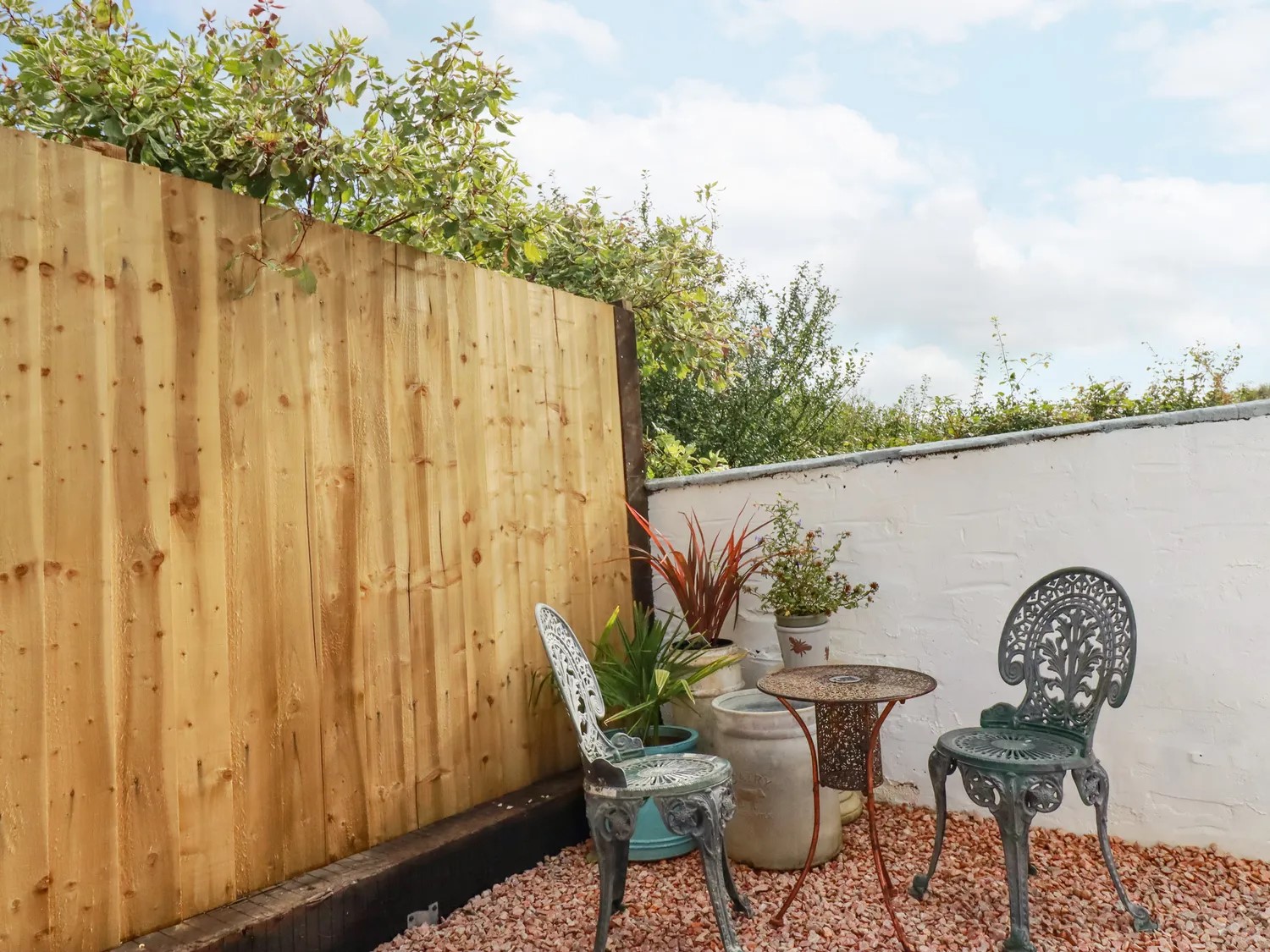 Has a lovely gravelled private garden whhich is south facing so will catch the sun from early morning to late afternoon. It backs onto old fields which are now under the Site of scientific interest protection. This is due to the rare butterflies that can be found round this area.They are called the Brown Skipper.